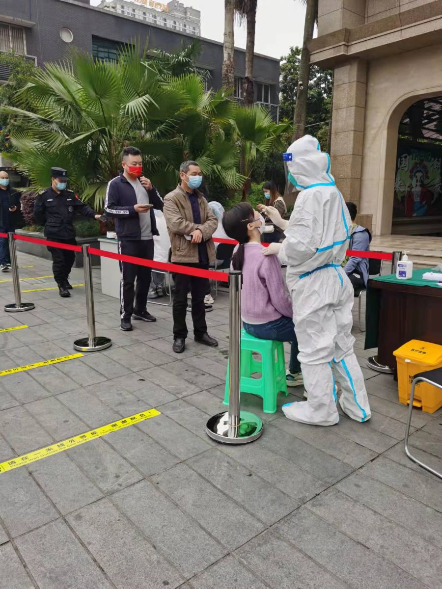 5月24日当日便积极主动组织全体员工携带身份证等有效证件,出示渝康码、行程码,全程佩戴口罩保持合理间距,听从现场工作人员指引参加核酸检测,现场虽然排队人数很多,但大家都积极配合,整个现场井然有序,所有人都在工作人员的指挥下都戴上口罩排队检测,现场没有一个人喧杂与插队。“我们要积极地面对,努力把这个难关扛过去。组织员工做核酸,是对市民负责,咱们都应该积极配合,应该多理解多支持、积极配合防疫工作。”